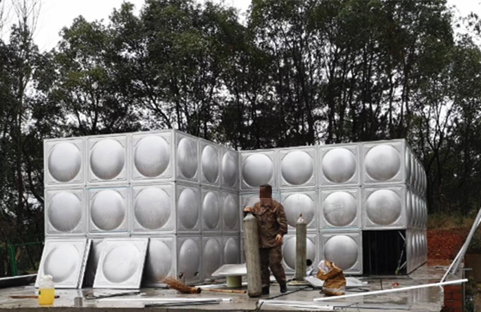 1、不銹鋼拼裝水箱由1*1的單張方形沖壓好的不銹鋼板拼裝焊接而成,與現代的建筑遙相呼應,具有時代感。