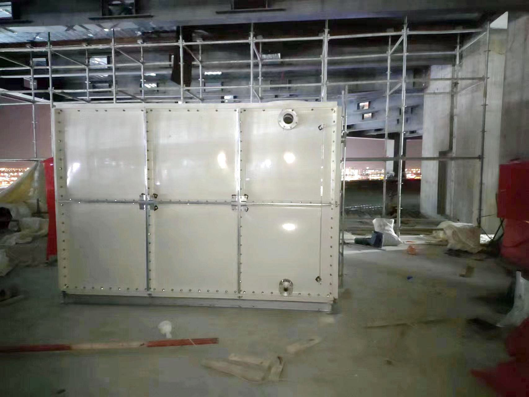 我司承接的河北省保定市雄安新區(qū)中化集團(tuán)現(xiàn)代化辦公樓消防臨時(shí)水箱項(xiàng)目,已安裝試水完畢。玻璃鋼水箱整體由好的SMC水箱板拼裝而成,造價(jià)低。其特點(diǎn)是采用樹脂,因此水質(zhì)好,清潔;具有強(qiáng)度高,重量輕,耐腐蝕,外型美觀,使用壽命長(zhǎng),保養(yǎng)管理方便等特點(diǎn)。