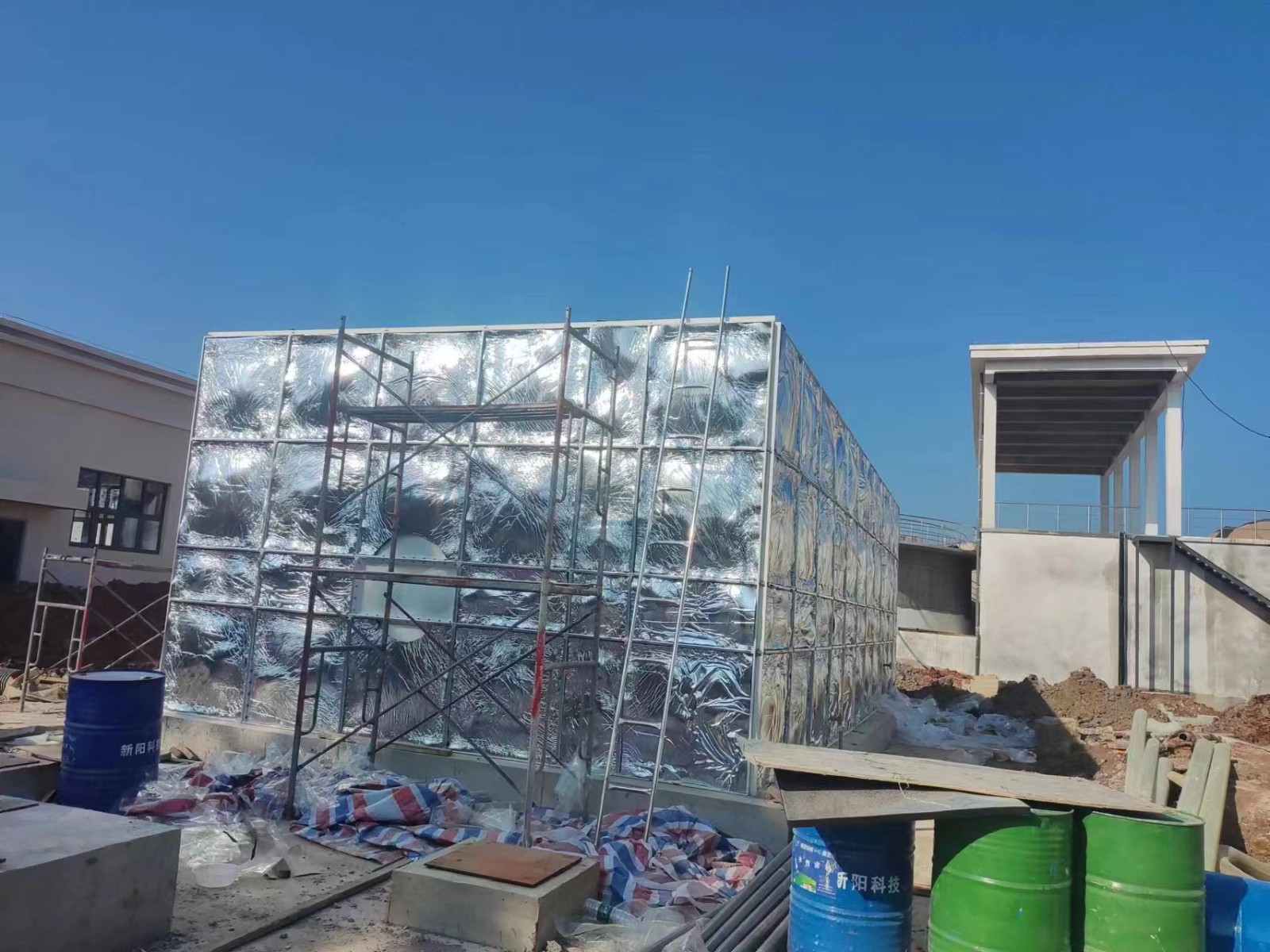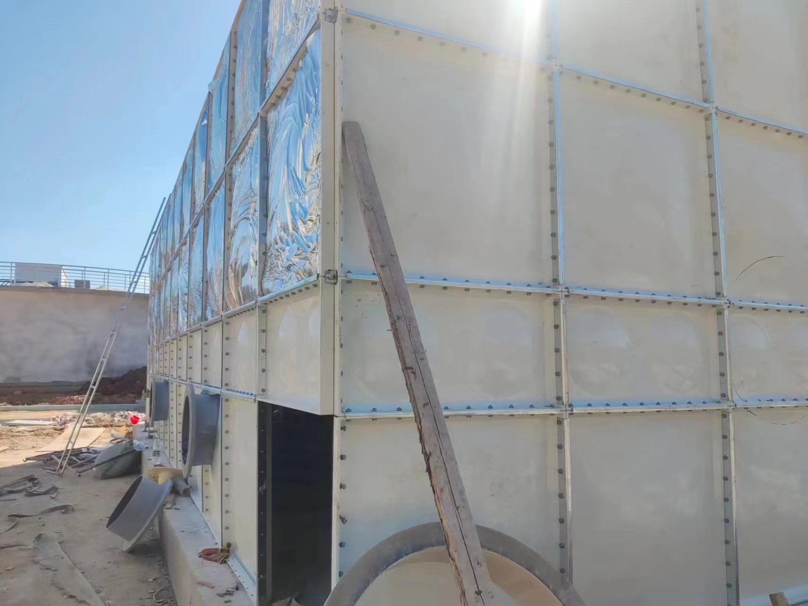 我司承接的江西省吉安市污水處理廠,空氣凈化過濾專用,玻璃鋼橡塑鋁箔布保溫箱項目,已安裝試水完畢。SMC組合式玻璃鋼水箱是采用的新型水箱。由整體優質的SMC水箱板拼裝而成。具有強度高,重量輕,耐腐蝕,外型美觀,使用壽命長,保養管理方便等特點。
