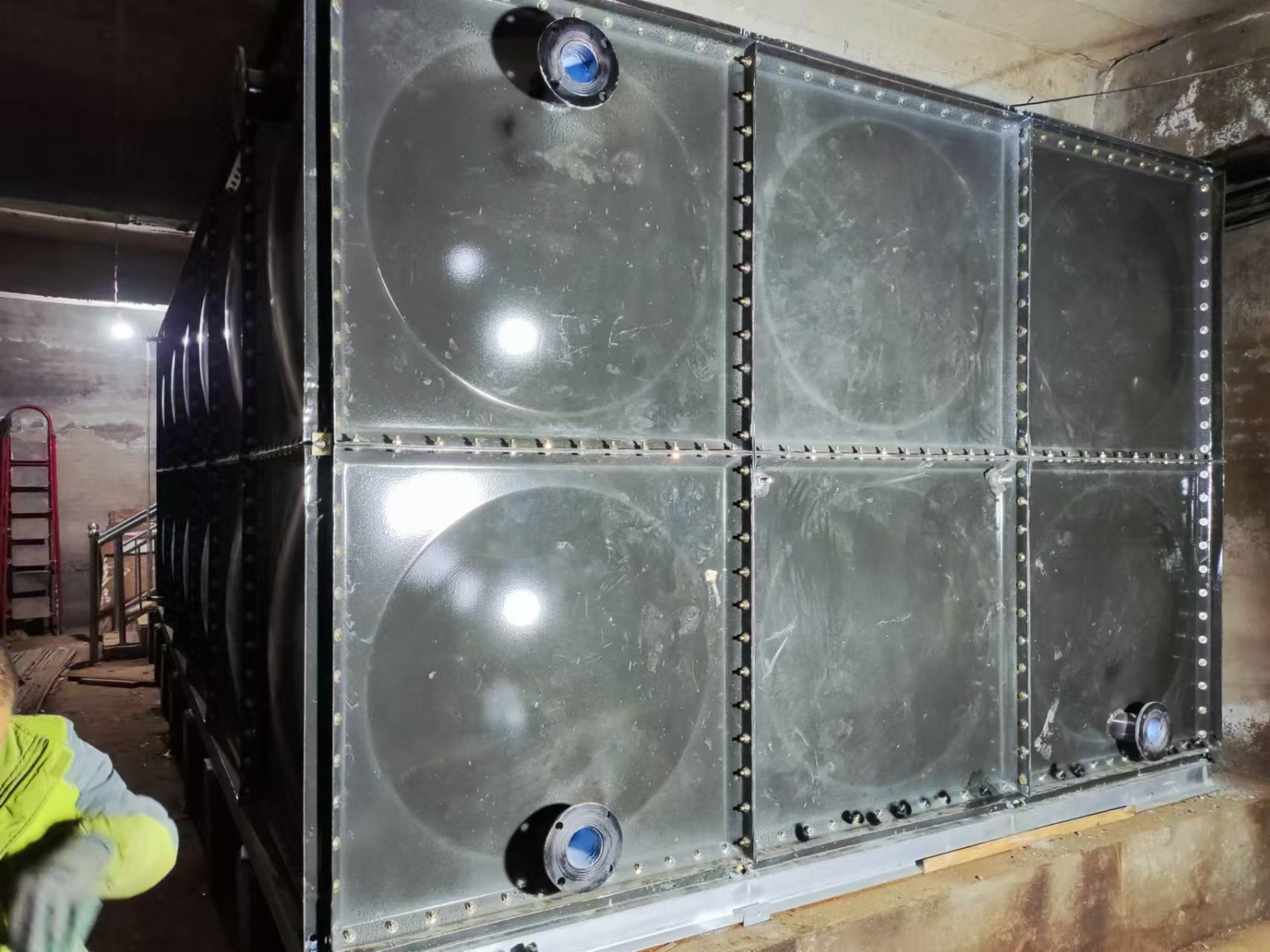 我司承接的河北省邢臺(tái)市寧晉縣東旺新村地下室生活飲用水項(xiàng)目,搪瓷鋼板水箱已安裝完成。搪瓷鋼板水箱的瓷面光滑容易清洗,耐腐蝕,而鋼板組裝結(jié)構(gòu),不易變形、抗震性強(qiáng)、抗沖擊力大。