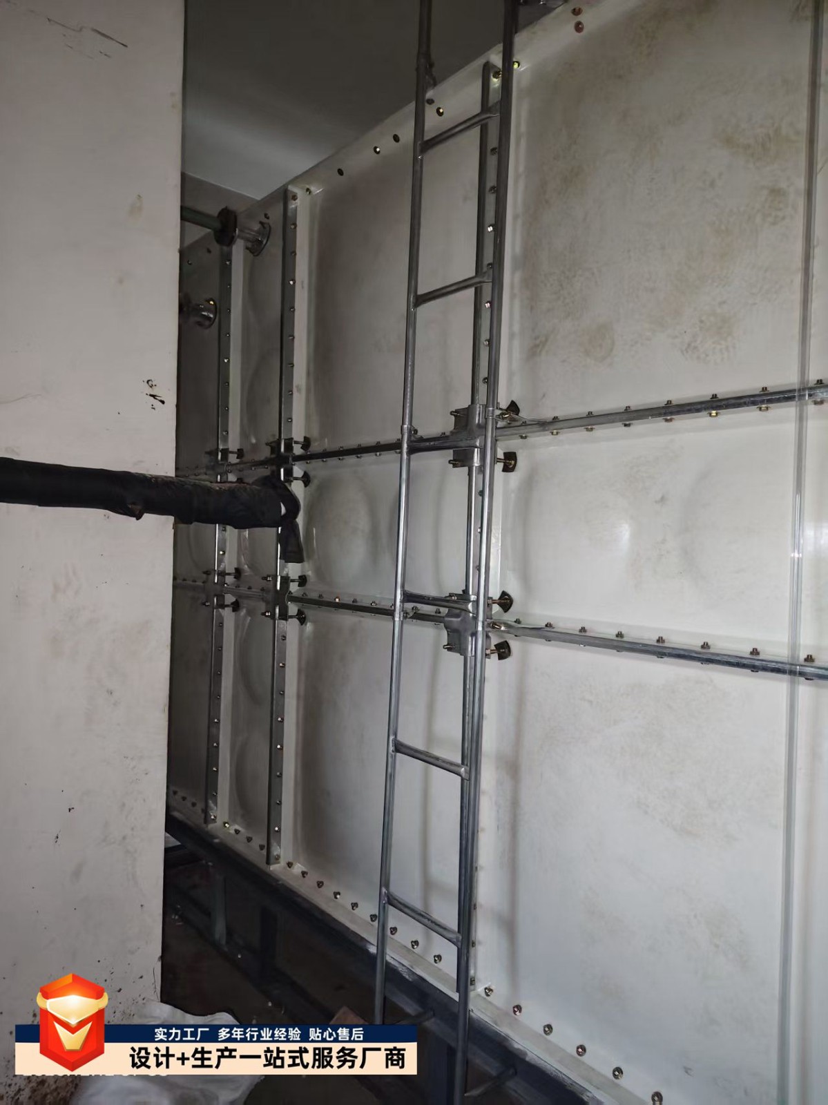 我司承接的天津河西新城大廈高位消防水箱項目,已安裝完畢。水箱安裝前是需要提前做基礎的,每個不同規格的玻璃鋼水箱都有不同的基礎要求的。玻璃鋼水箱底部應設置高為50cm混凝土或者磚砌的基礎,玻璃鋼水箱周圍和頂部應該留有≥50cm的安裝與檢修空間,方便安裝人員檢修以及后期玻璃鋼水箱清洗與維護等。